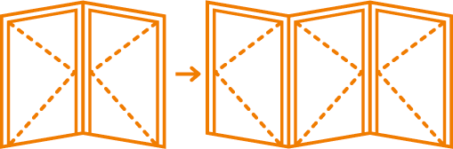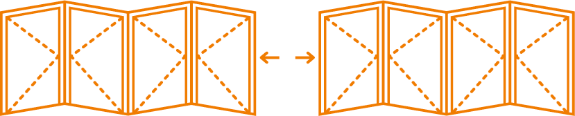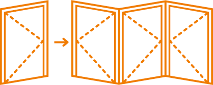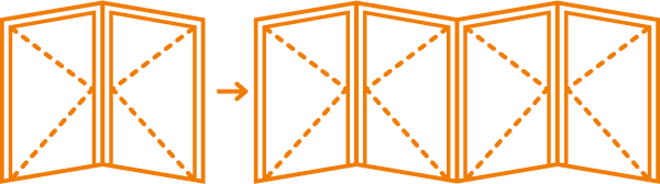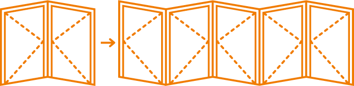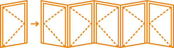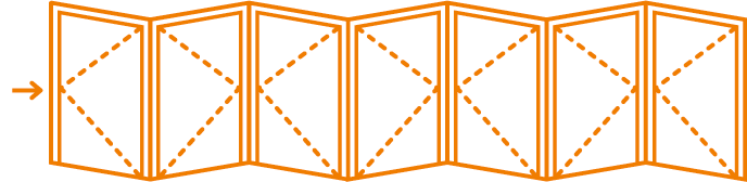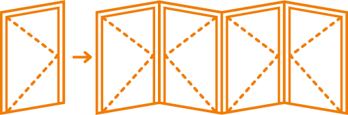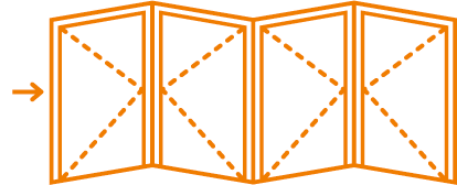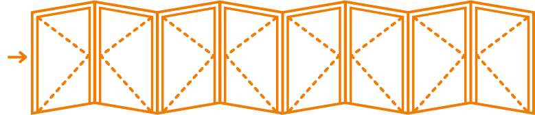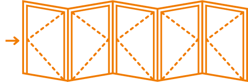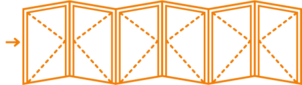 Остекление этого вида представляет собой 2 и более вертикальные створки, соединенные шарнирами. При открытии весь проем заполняется свето-прозрачной конструкцией. При закрывании она складывается к стене, где закреплена обычным способом, двигаясь по направляющему рельсу. Сегодня разработано большое число различных конструкций этого типа, можно купить оконные двери Гармошка таких видов: