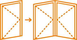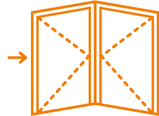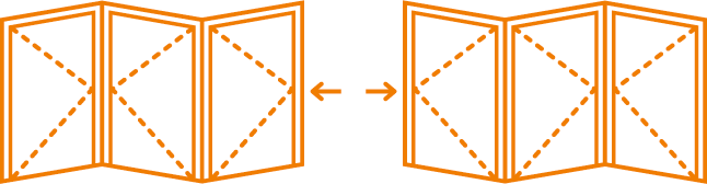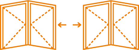 Двустворчатые двери-патио устанавливаются в широких проемах (например в гостиную), а также используются как отгораживающие сектор в помещении перегородки. Они открываются в противоположные стороны от центра.