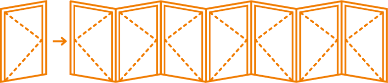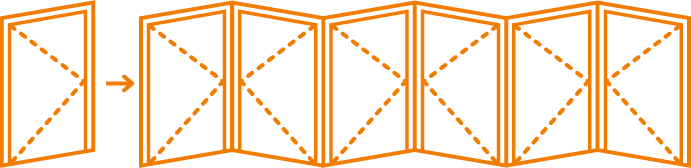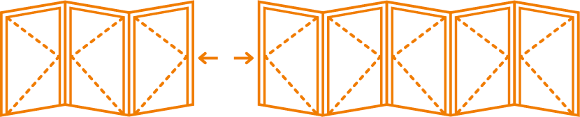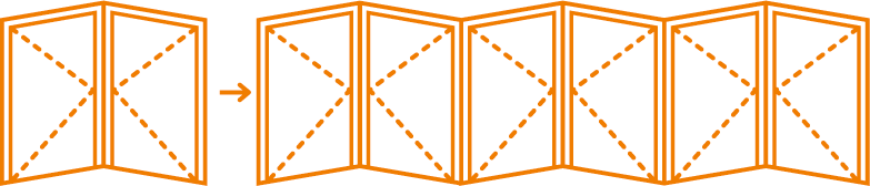 Особенности конструкции позволяют открывать проем практически полностью, при этом в сложенном виде дверь занимает всего около 10% от ширины проема. Это идеальное решение, когда важны: