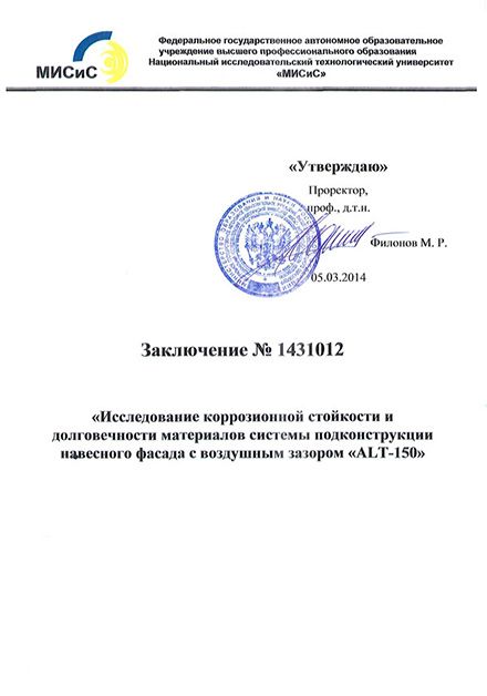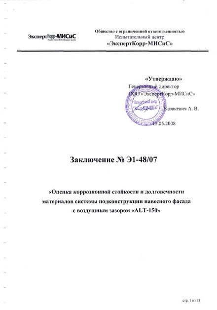 Вентилируемые фасады на базе ALT 150 прослужат не менее 30 лет в неагрессивной и слабоагрессивной средах. Если конструкция используется в среднеагрессивной среде, то срок ее службы составит 25 лет. При использовании защитного анодного покрытия, сроки службы увеличиваются до полувека.