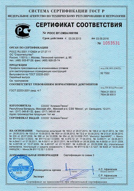 Профили изготавливаются из сплава AlMg0.7Si 6063 по ГОСТ 22233-2001, состояние материала Т6. Сплав устойчив к коррозии и позволяет изготавливать профили высокой точности. В комбинированных профилях используются термоизолирующие профили из стеклонаполненного полиамида ведущих европейских производителей. Отличные прочностные характеристики комбинированных профилей обеспечиваются современной технологией соединения разнородных материалов.