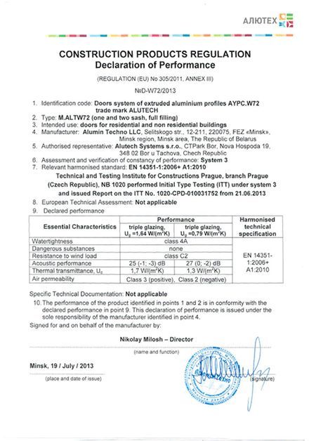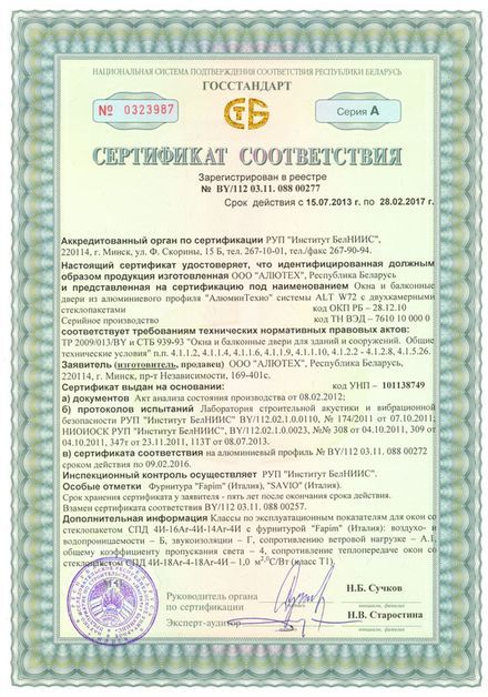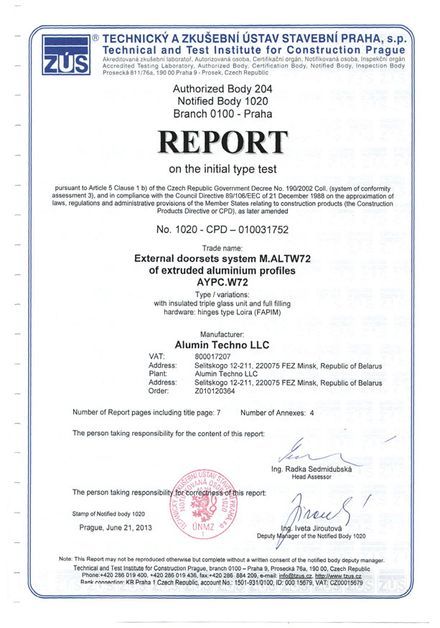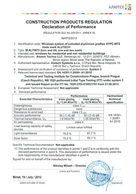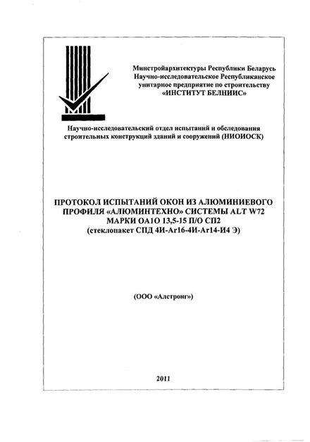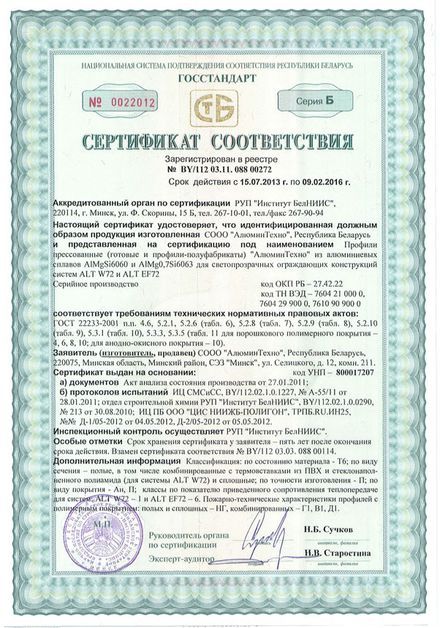 Профильная система Alt W72 создается из сплава AlMg0.7Si 6060 по ГОСТ 22233-2001, состояние материала Т6. Этот сплав не подвергается коррозии и допускает изготавливать изделия высочайшей точности. В комплексных профилях применяются термоизолирующие профили из стеклонаполненного полиамида лидирующих европейских производителей. Превосходная прочность комплексных профилей обеспечивается новой технологией совмещения разнородных материалов.